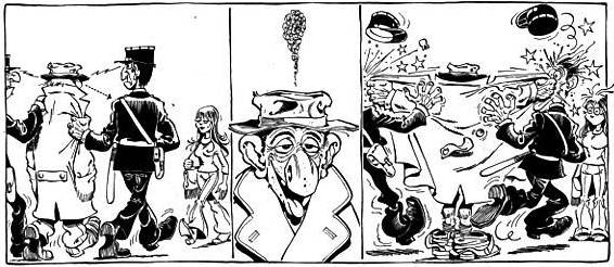 Mickey ou Tintin me semblaient fades une fois que mes yeux s’étaient plongés dans vos digressions (écrites d’abord par Goscinny pour les Dingodossiers, puis entièrement pilotées par vous à partir de 1967 dans les Rubriques-à-Brac), de denses planches de textes très littéraires et de dessins explosifs, alternant une placidité so british avec une décharge d’expressions délirantes, de lettrages cartoonesques, de visages déformés par la folie, la colère, le fou rire… Influencé par la revue américaine MAD, vous avez à l’évidence ouvert une brèche dans ces années fécondes en génies de la BD (vous êtes contemporain des Moebius, Fred, Tardi, Mézières, Druillet, Bilal…) en croisant l’humour anglo-saxon avec une patte française, volontiers portée sur le pastiche et la gaudriole de qualité auxquels je reste toujours aussi sensible. Le mélange improbable de l’absurde, du débile et du pince-sans-rire. Un régal (d’ailleurs, je ricane bêtement à cet instant précis).